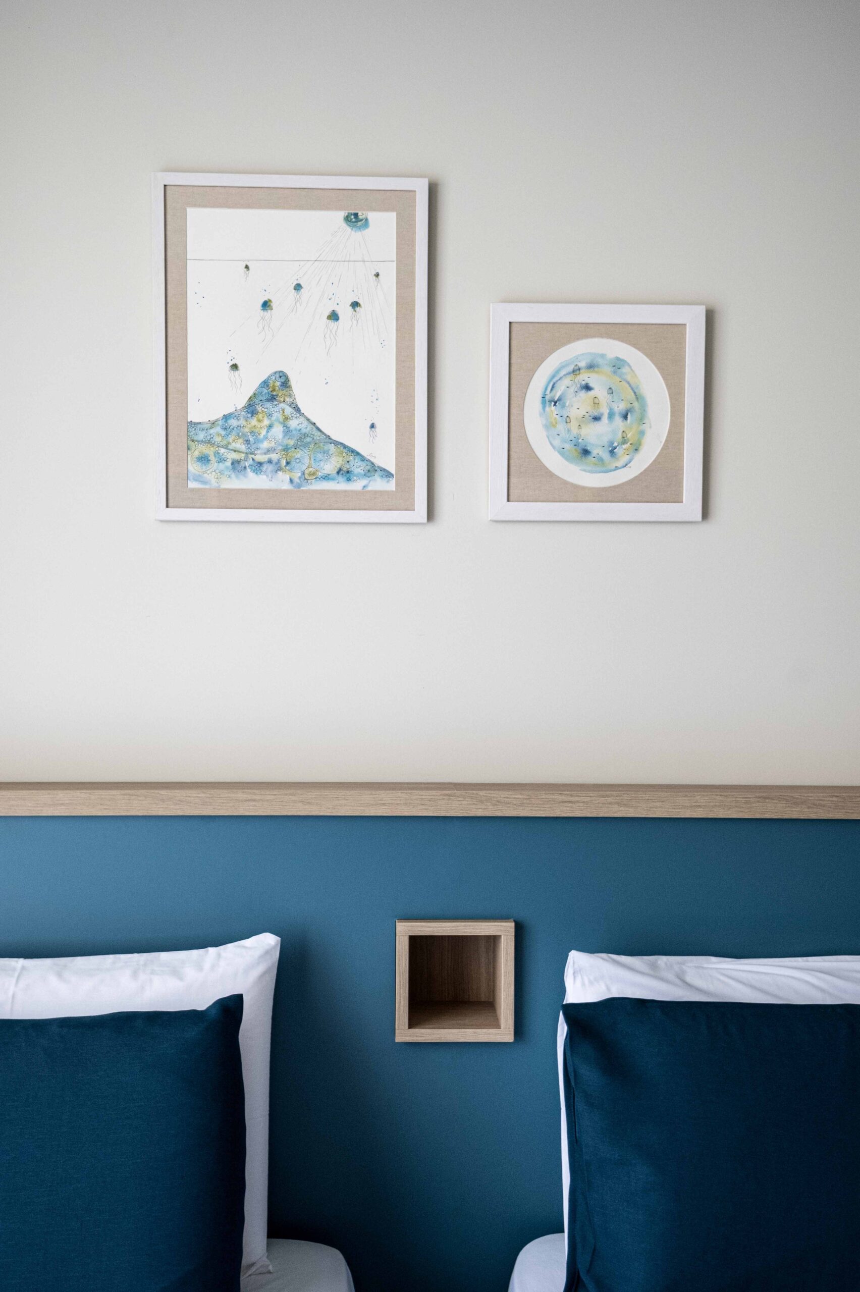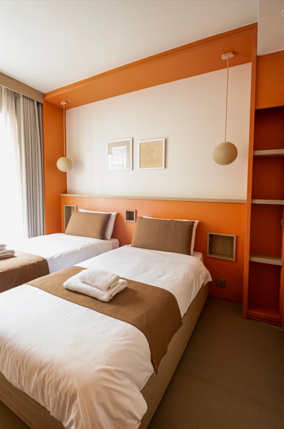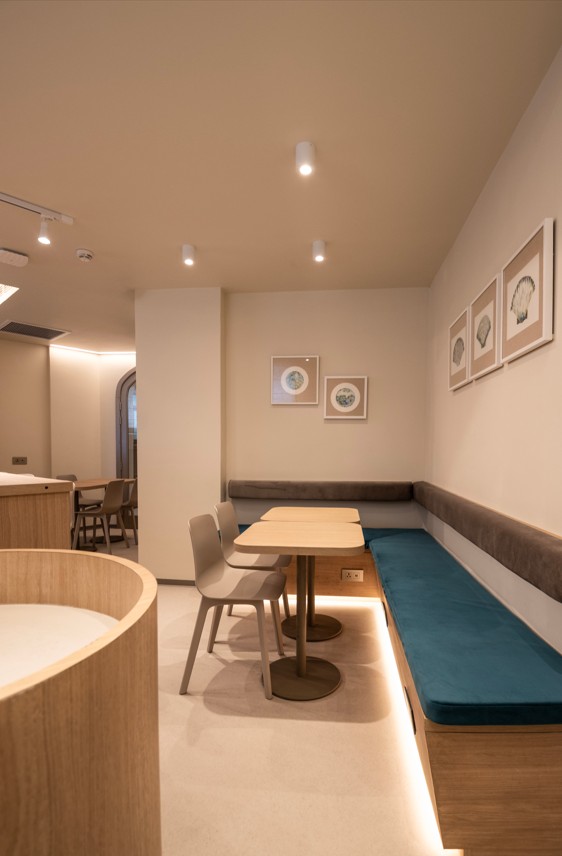 Guests enter through a lobby inspired by the movement of currents, where soft lighting and flowing architectural lines evoke the mystery of descent. Shared spaces include a breakfast area, a rooftop diver’s lounge and terrace with sea and landscape views.