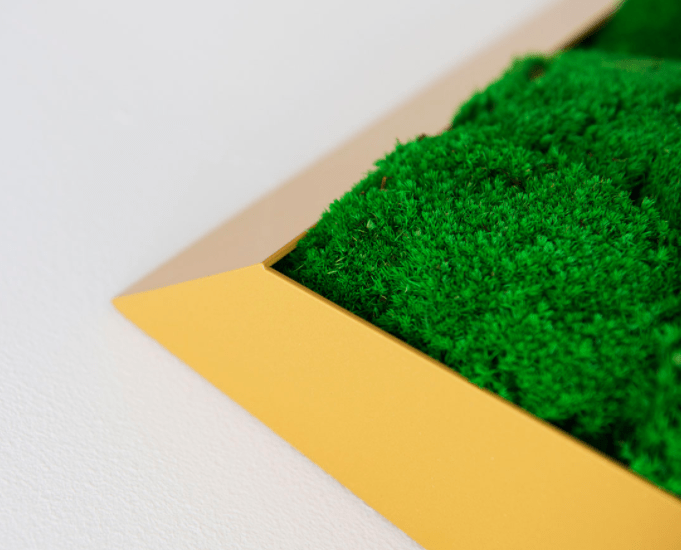 Inspired by the architectural details found on Modernist and Brutalist building facades, the moss-covered boxes provide an opportunity to shape an interior space in a custom way.