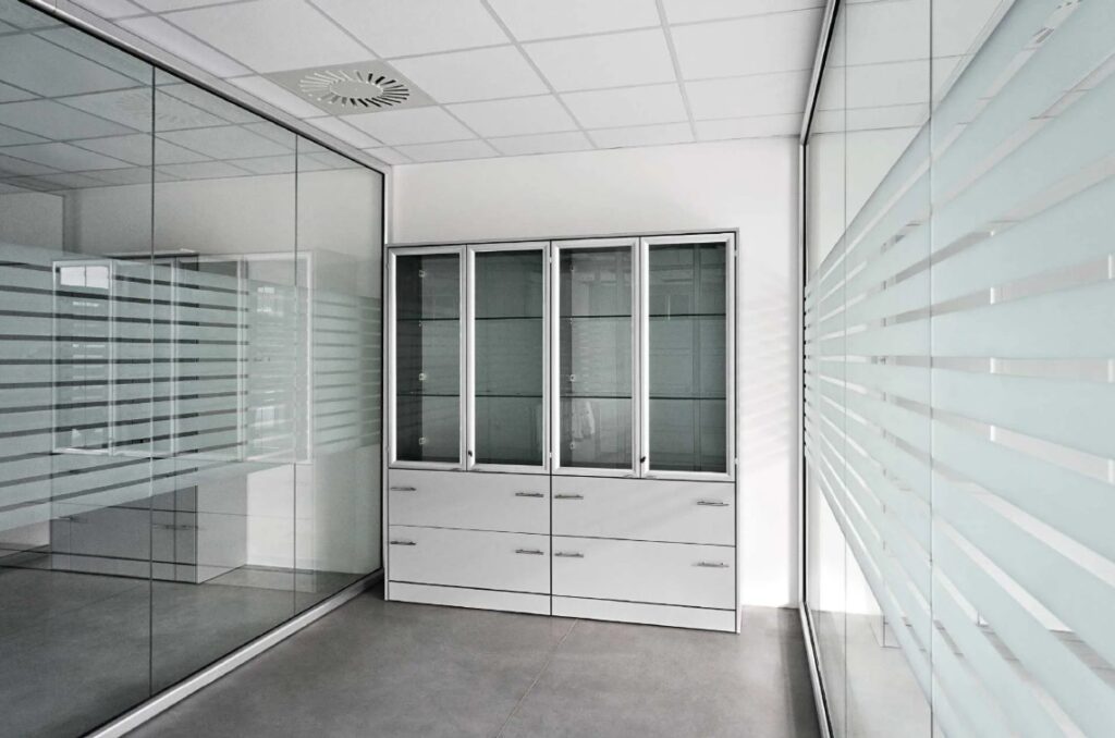 - Vertical sides with holes every 32 mm for accessories; base and top secured with metal joints